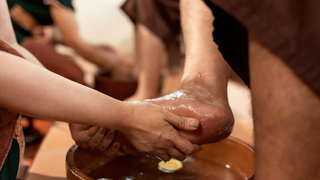 A revitalizing foot massage focusing on pressure points to restore energy and relaxation.