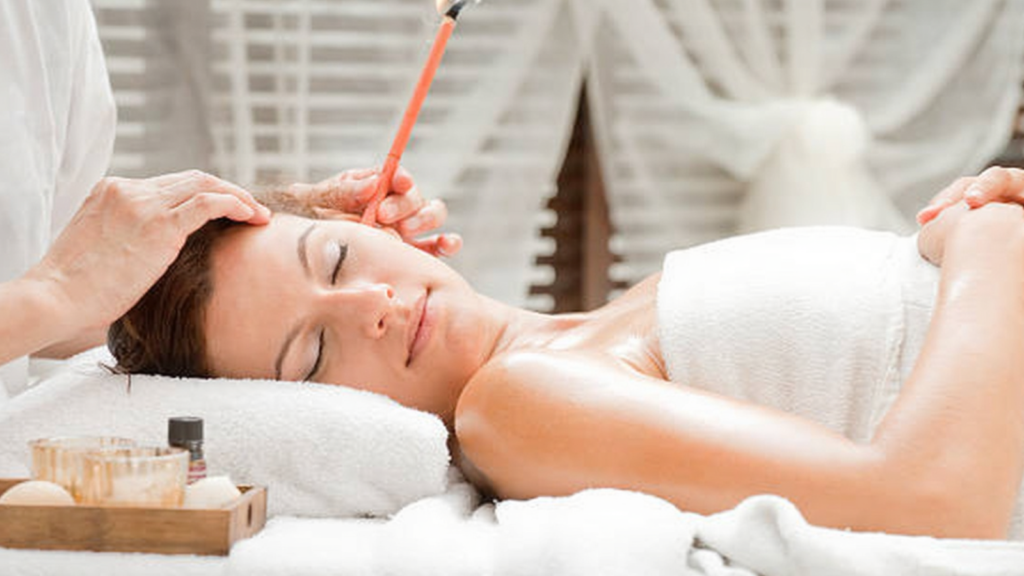 A calming ear candle therapy combined with a relaxing face massage for deep relaxation and comfort.